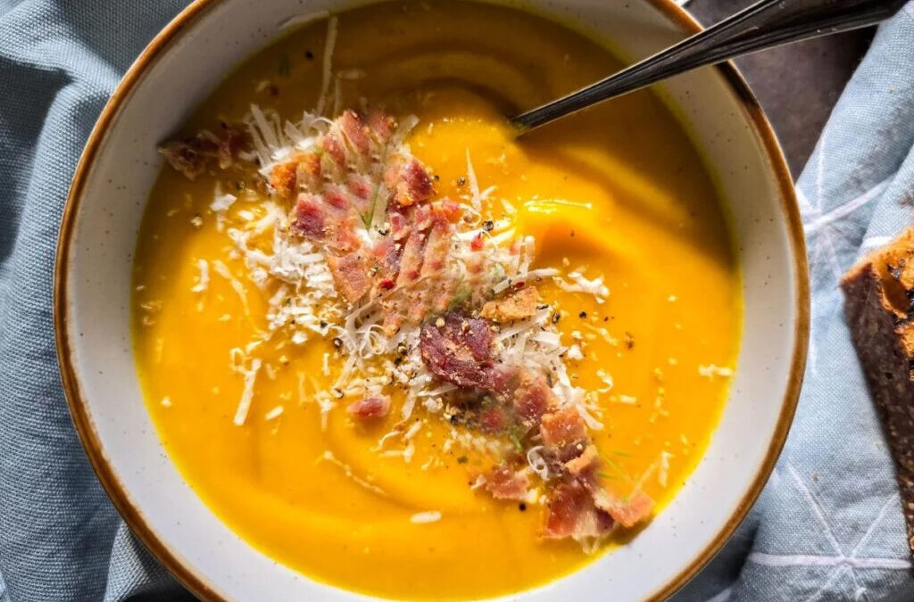 The smell of fall and harvest is in the October air. The cooler morning temps give way to warm afternoons. This creamy very rich soup is a perfect belly warming meal for those cooler evenings